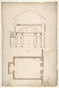 Sección y planta de la Villa Capra tal como aparecen en I Quattro Libri dell'Architettura (publicado por Palladio en 1570) -