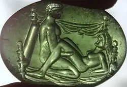 - ↑ a b Clarke, John R. (abril de 2003). Roman Sex: 100 B.C. to A.D. 250. Nueva York: Harry N. Abrams. p. 168. ISBN 0-8109-4263-1.