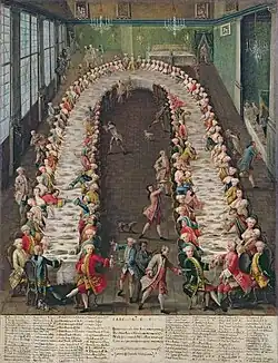 Entre las costumbres sociales de los griegos se encontraba el symposion, un banquete en el que, después de alimentarse, era frecuente la práctica de la música y la poesía, así como la conversación, en ocasiones de elevado nivel filosófico, como las descritas por Jenofonte y Platón —autor de El banquete—.[44] En los simposios se consumía vino en abundancia, mientras que la comida era más frugal. En estos banquetes solo participaban hombres, mientras que la presencia de la mujer se reservaba a artistas y prostitutas.[40]
