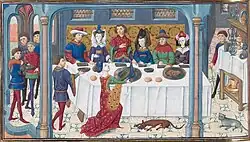 Posteriormente destaca Le Viandier de Taillevent —seudónimo de Guillaume Tirel—, escrito hacia 1373. Taillevent fue uno de los primeros cocineros de renombre. Tras veinte años de aprendizaje, fue cocinero de los reyes Felipe VI, Carlos V y Carlos VI de Francia. Su obra supuso un intento de renovación de la cocina francesa, con un tipo de recetas en las que se concedía cada vez mayor importancia a las salsas y especias. Las salsas solían ser ácidas y picantes, ya que se elaboraban con bases de líquidos ácidos, como el vinagre, el agraz o zumos de limón, naranja o grosella, a los que se añadían especias como canela, azafrán, jengibre, clavo, pimienta o nuez moscada, además de plantas aromáticas (ajo, perejil, cebolleta) y azúcar o miel; también solía ligarse con pan mojado o yema de huevo. Estas salsas se aplicaban a todo tipo de carnes, entre las que se encontraban tanto ternera, buey, cerdo y aves de corral, como piezas de caza, pavos reales, cisnes, gansos, cigüeñas, faisanes, garzas, grullas, cormoranes y un largo etcétera. Sus recetas se limitan a cuatro técnicas: asado, hervido, fritura y braseado. No indican los ingredientes por persona, ya que en aquella época se servían los platos por servicio: cada comida solía tener tres o cuatro servicios, dentro de cada cual se servían varios platos a la vez de los que los comensales escogían las porciones que quisiesen comer («servicio a la francesa»). Introdujo un lenguaje específico de términos de cocina que se iría consolidando con el tiempo, algunos de los cuales aún hoy se utilizan.[84]
