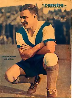 En el campeonato de 1938, pese a que el equipo comenzó a declinar en su rendimiento futbolístico y terminó décimo en las posiciones, se destacó la actuación del insider derecho (lo que hoy sería un volante o carrilero por el sector), Florencio Caffaratti, quien al anotar 32 tantos en el certamen se ubicó en el podio de goleadores, además de establecer un récord de conquistas en una temporada, que en la actualidad perdura, para un jugador en su posición.[81][82] También se produjo el debut del juvenil arquero Miguel Ángel Rugilo, quien años después fue bautizado por el periodista Luis Elías Sojit como el León de Wembley, por su actuación con la Selección Argentina en un partido en el mítico estadio Inglés, contra la selección local.[83] En lo institucional, Nicolás Marín Moreno, fue elegido por segunda vez como presidente.