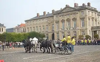 Un paciente trabajo de selección en Francia, permitió diferenciar las razas locales de tracción ya a partir de la década 1900-1910.[96] Si bien Estados Unidos estaba más avanzado que Europa en materia de mecanización industrial, en contrapartida estaba más carenciado de caballos de tiro de calidad, para con ellos poder trabajar sus inmensos territorios.[97] Por ello, miles de animales de tiro fueron exportados desde Europa Occidental hacia los Estados Unidos, y particularmente desde Francia, Bélgica, Gran Bretaña, e Irlanda. Este mercado en su momento fue muy lucrativo.[98] Por ejemplo, en 1915, la raza Percheron contaba con 40 000 animales registrados en Estados Unidos, formando en ese momento el grupo de caballos de tiro más numeroso.[99]