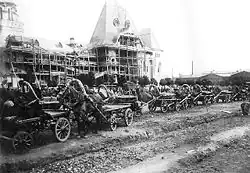 En el plano ofensivo en el campo de batalla, el caballo casi desapareció completamente, pero de una forma o de otra, su presencia siguió siendo significativa todo a lo largo de esa gran guerra de la segunda década del siglo XX, conflicto en el cual participaron alrededor de ocho millones de caballos.[125] Claro, el empleo del caballo entonces se concentró en el área logística, pues dicho animal presentaba la gran ventaja de poder ser utilizado en terrenos accidentados o fangosos, dificultosamente accesibles a los vehículos motorizados, y con la ventaja adicional de no requerir carburante (pues entonces las necesidades de carbón, gasolina, y gas, sobrepasaban en mucho a la producción).[126]