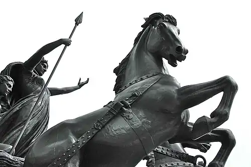 Los caballos tenían gran significado dentro del paganismo Anglosajón. El historiador del siglo VIII Bede, de Jarrow, en Northumbria, escribió que los primeros caciques, en el siglo V, fueron Hengist y Horsa - palabras en inglés antiguo para «cimarrón» y «caballo», respectivamente.[44] Los estudiosos modernos consideran a Hengist y Horsa como deidades de caballos veneradas por los anglosajones paganos, evemerizado a los ancestros de la realeza anglosajona, y derivada de los gemelos divinos de la religión protoindoeuropea, con cognados en varias culturas indoeuropeas.[45]