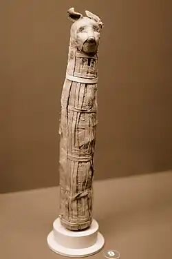 Los faraones también consideraban sagradas a las serpientes, a las vacas y a los peces, pero el gato seguirá siendo sin embargo el más sagrado de todos. El culto y la preocupación por el bienestar del gato se transmitirá de generación en generación. Los funerales de los gatos se colmaban de todos los honores y la familia a la que pertenecía guardaba luto y se afeitaba las cejas en señal de duelo. Cuanto más rica era la familia, más importantes eran los funerales y más suntuoso era el sarcófago. Acompañaban al gato ratones embalsamados, para que siguiera jugando en el más allá. En 1890 se descubrieron en Tell Basta, la antigua Bubastis, en otro tiempo capital de Egipto, más de 300.000 momias de gatos. Estaban aún guardadas en sus pequeños cofres de madera esculpida o rodeadas de esterillas de juncos coloreados y entrelazados. Los cuerpos estaban envueltos en bandas de colores ricos y variados, y tenían la cara cubierta con una máscara funeraria sobre la que se podía distinguir el hocico, los ojos, las orejas y los bigotes.