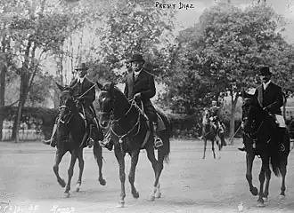 Durante la última parte del siglo XIX, después de unos primeros cincuenta años marcados por la guerra, invasiones extranjeras e inestabilidad política, coincidiendo con el gobierno del presidente Porfirio Díaz, se produjo un crecimiento económico sin precedentes, acompañado también de una elevación de la inversión extranjera y el desarrollo del sistema ferroviario y la explotación de los recursos naturales del país. El Producto interno bruto (PIB) per cápita a principios de la década de 1900 estaba a la par del de Argentina y Uruguay, casi tres veces más que el de Brasil y Venezuela,[3] el PIB per cápita en México en comparación al estadounidense pasó del 27,6 en 1870 hasta el 34,1% en 1910. El crecimiento económico anual promedio entre 1876 y 1910 fue de 3,3 %.[20] Sin embargo, el bienestar alcanzó a muy pocos y empobreció a la mayoría, con una distribución de la tierra en grandes latifundios. Esta desigualdad junto a la represión política y la repetida reelección de Díaz, constituyeron las bases de la Revolución mexicana (1910-1917) un conflicto armado que transformó radicalmente la estructura política, económica, social y cultural del país durante el siglo XX.