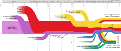- ↑ Olalde, Iñigo; Mallick, Swapan; Patterson, Nick; et al. (15 de marzo de 2019). «The genomic history of the Iberian Peninsula over the past 8000 years». Science 363 (6432): 1230-1234. doi:10.1126/science.aav4040. Consultado el 5 de diciembre de 2024.