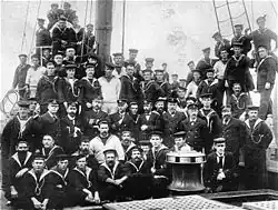 Con la excepción de Australia Occidental, en las colonias también funcionaron sus armadas. En el año 1856, Victoria recibió su propio buque de guerra, el HMCSS Victoria, y su despliegue en Nueva Zelanda en el año 1860 durante la primera guerra de Taranaki, marcó la primera ocasión en que un buque de guerra australiano había sido desplegado en el extranjero.[29] Las marinas de guerra coloniales se ampliaron en gran medida a mediados de la década de 1880 y consististieron en una serie de barcos de guerra y torpederos para la defensa de puertos y ríos, así como brigadas navales para equipar los buques y fortalezas. Victoria se convirtió en la más poderosa de todas las marinas coloniales, con el acorazado HMVS Cerberus en servicio desde 1870, así como el buque de guerra de vapor y vela HMS Nelson en calidad de préstamo de la Royal Navy, tres cañoneras y cinco pequeños torpederos. Nueva Gales del Sur formó una brigada de la Marina en el año 1863 y por el cambio de siglo tuvo dos pequeños torpederos y una corbeta. La Fuerza de Defensa Marítima de Queensland fue fundada en el año 1885, mientras que el sur de Australia operaba una sola nave, el, HMCS Protector. Tasmania tenía también un pequeño cuerpo de torpederos, mientras que solo las defensas navales de Australia Occidental incluía la Artillería Naval de Fremantle. Personal naval de Nueva Gales del Sur y Victoria participaron en el Levantamiento de los bóxers en China en el año 1900, mientras que el HMCS Protector fue enviado a Australia del Sur, pero no entró en acción alguna.[30] Las colonias separadas mantuvieron el control sobre sus fuerzas militares y navales hasta su Federación en el año 1901, cuando se fusionaron y se colocaron bajo el control de la nueva Australia.[31]