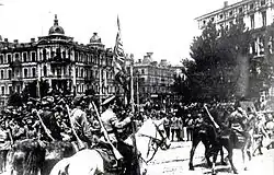El 30 de enero de 1918, el líder bolchevique Vladímir Lenin decretó el establecimiento del Ejército Rojo, fusionando oficialmente a 20.000 Guardias Rojos con 200.000 marineros de la Flota del Báltico,[1] así como a un puñado de soldados de la guarnición de Petrogrado, simpatizantes de la causa. León Trotski fue nombrado el primer Comisario del Pueblo de Guerra del Gobierno soviético.