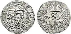 ↑"cruzado: ... 7. m. Moneda antigua de Castilla, de plata o de vellón, mandada acuñar por Enrique II. La de plata tenía una cruz en el anverso. 8. m. excelente de la granada (‖ moneda que llevaba una cruz en el anverso). 9. m. Moneda antigua de plata, de Portugal." (Real Academia Española. «cruzado». Diccionario de la lengua española (23.ª edición).)