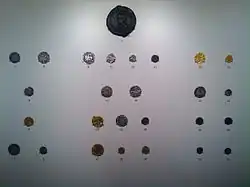 Monedas griegas en el Museo Nacional de Arte de Cataluña (MNAC). El llamado "Tesoro de la Neápolis", 897 fracciones de plata dentro de un olpe seudojónico. Siglos VI - IV a. C.[2]