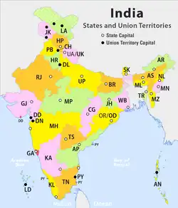 - ↑ «States of India since 1947» (en inglés). World Statesmen. Consultado el 12 de noviembre de 2012.
