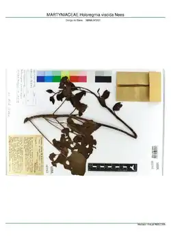 Holoregmia es un género monotípico de plantas con flores perteneciente a la familia Martyniaceae. Su única especie Holoregmia viscida, es originaria de Brasil.[1]