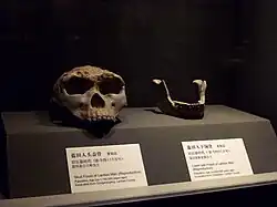 ![]() Hombre de Lantian, reconstrucción en el Museo de Historia de Shaanxi, Xi'an (foto tomada en marzo de 2006) | ||