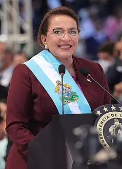 En 1891 se fundó el primer partido político, el Partido Liberal de Honduras, y en 1902 el Partido Nacional de Honduras. Ambos partidos gobernaron el país hasta 2022, cuando el Partido Libertad y Refundación, fundado en 2011, llegó a la presidencia. Su llegada al poder también marcó la ascensión de la primera mujer presidenta, Xiomara Castro. Con las elecciones generales de 1981 y la constitución de 1982 comenzó la llamada Era Democrática.[19] En 2009 el país atraviesa la mayor de sus crisis políticas y sociales, que incluyó un golpe de Estado al Poder Ejecutivo y que fraccionó al Partido Liberal.