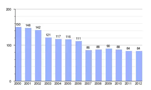 | Gráfica de evolución demográfica de Hontanares entre 2000 y 2012 |