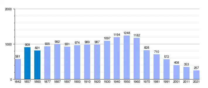 | Gráfica de evolución demográfica de Hontanaya[2] entre 1842 y 2021 |
