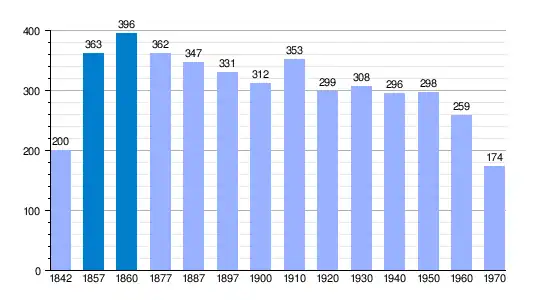 | Gráfica de evolución demográfica de Hontomín[1] entre 1842 y 1970 |