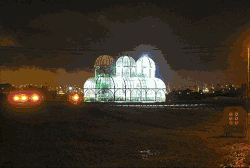 La estructura metálica de los invernaderos del Jardín Botánico de Curitiba (Curitiba, Paraná, Sur de Brasil), con sus luces apagadas en el 2010.