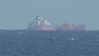que llega a casi exactamente seis metros. Por lo tanto, el observador puede ver esa parte del barco que está a más de seis metros sobre el nivel del agua. La parte de la nave que está por debajo de esta altura está oculta para él por la curvatura de la Tierra. En esta situación, se dice que el barco está hundido "casco abajo" (hull down en inglés).[12]
