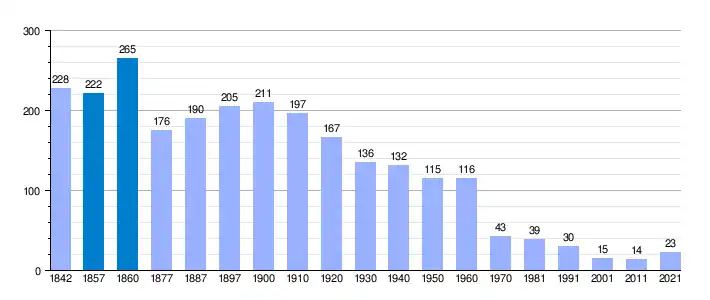 | Gráfica de evolución demográfica de Hornillos de Cameros[2] entre 1842 y 2021 |