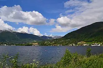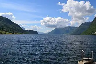 Su volumen se estima en 12 km³, su área es de 51 km² y ocupa el número 19 por su área entre los lagos de Noruega. Se encuentra ubicado en el municipio de Hornindal, provincia de Vestland, a un kilómetro al sur de la frontera del condado de Møre og Romsdal. El lago se localiza dentro de las fronteras de los municipios de Eid y Hornindal. La salida principal es el río Eidselva, que desemboca en el Eidsfjorden, un brazo de la principal Nordfjorden.