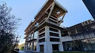 La estructura central presenta un pórtico más que la estructura correspondiente a los hornos. Este pórtico sobresaliente está situado en la parte trasera del edificio y dispone de una altura menos que las estructuras laterales.