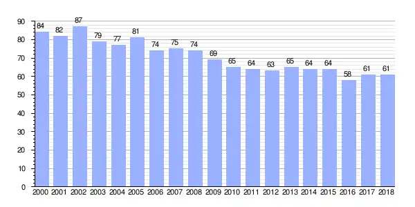 | Gráfica de evolución demográfica de Hortas entre 2000 y 2018 |