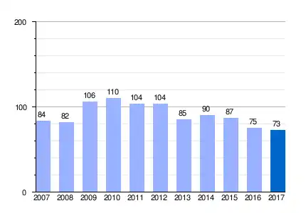 Gráfica de evolución demográfica de Las Hortichuelas entre 2007 y 2017