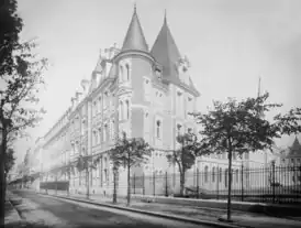 - Julio de 1907: gracias a las primeras donaciones recaudadas, el banquero John H. Harjes (cofundador de Morgan, Harjes & Co.),[2] como Presidente del Consejo de Administración, firma la escritura de compraventa de una propiedad ubicada en Neuilly-sur-Seine, en un terreno paralelo a la calle Chauveau, una parcela que alguna vez fue una de las fincas preferidas del rey Luis Felipe.[3]