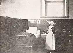 A cargo del hospital estaban las Hermanas de la Caridad de San Vicente de Paul, una congregación de nacionalidad francesa, que en 1663 había fundado el célebre sacerdote Vicente de Paul. Este santo, canonizado en 1737, fue el primer educador de la asistencia voluntaria, por cuanto reclutó a personal profesionalizado y lo preparó mediante cursos teóricos y prácticos que constituyeron en realidad la más antigua escuela de enfermeras del mundo. Fueron ellas quienes instalaron y establecieron la capilla en el patio central del sanatorio, la cual fue declarada Monumento Histórico en 1981.[1]