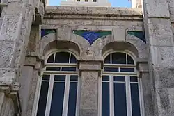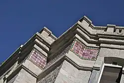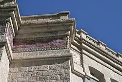| Detalles de las decoraciones cerámicas de la fachada: elaboraciones de Daniel Zuloaga.[17] | |||||||||