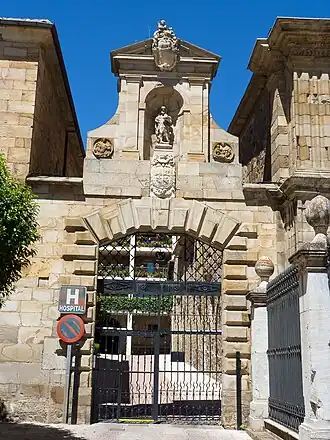 El edificio antiguo se destruyó en un incendio ocurrido en 1756.[nota 1] Se reedificó después y quedó construido en 1776, a expensas del obispo Francisco Javier Sánchez Cabezón, añadiendo al conjunto una casa-botica.[nota 2] La puerta de entrada se conserva; es una puerta neoclásica que tiene una hornacina con la estatua del santo y un gran escudo de linaje del obispo citado, más dos escudos catedralicios. Tuvo como hospital cuatro grandes salas para enfermos, dos de medicina general y dos de cirugía.