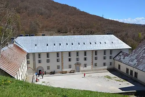 El edificio del nuevo hospital, actualmente funcionando como albergue de peregrinos