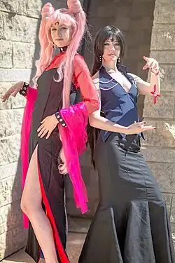 - ↑ Artbook oficial de Bishōjo Senshi Sailor Moon Cosmos (película de 2023 basada en la 5ª temporada del manga original): Takeuchi, Naoko; Toei Animation (2 de agosto de 2023). «Pretty Guardian Sailor Moon Previous Story - これまでのストーリー» [La historia previa de Pretty Guardian Sailor Moon - Historia hasta ahora]. 劇場版「美少女戦士セーラームーンCosmos」公式ビジュアルBOOK [Libro visual oficial de la película Bishōjo Senshi Sailor Moon Cosmos] (en japonés). Tokio: Kodansha. p. 5. ISBN 9784065324530. «III 「デス・バスターズ」編 (...) 三人は (...)「破滅の神」で あるセーラーサターンの目覚めの阻止への強い意志を示す。[Arco III: Saga de los "Death Busters" (...) Las tres (Sailor Uranus, Neptune y Pluto) muestran una fuerte determinación de impedir el despertar de la 'diosa de la destrucción', Sailor Saturn.]».