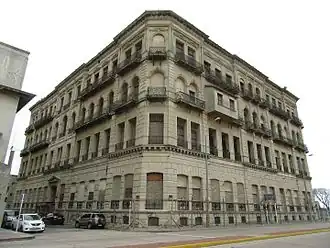 Fue construido por iniciativa de Emilio Reus en 1888 y proyectado por el arquitecto italiano Juan Tosi. El edificio originalmente estaba planificado para instalar allí un hotel y se integraría con un complejo Médico e Hidrotermo Terápico ubicado en el sur de la Ciudad Vieja, sobre el barrio Guruyu. Si bien el edificio fue culminado en 1890, el estallido de la crisis de 1890 provocó que nunca abriera sus puertas.