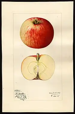 - ↑ Hampson, Cheryl R.; Kemp, Henk (2003). Apples. Botany, Production and Uses, ed. Characteristics of Important Commercial Apple Cultivars. CABI Publishing. pp. 62. ISBN 0-85199-592-6.
