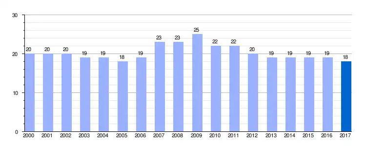 | Gráfica de evolución demográfica de Hoyuelos de la Sierra entre 2000 y 2017 |