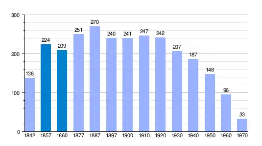 | Gráfica de evolución demográfica de Hoyuelos de la Sierra[3] entre 1842 y 1970 |
