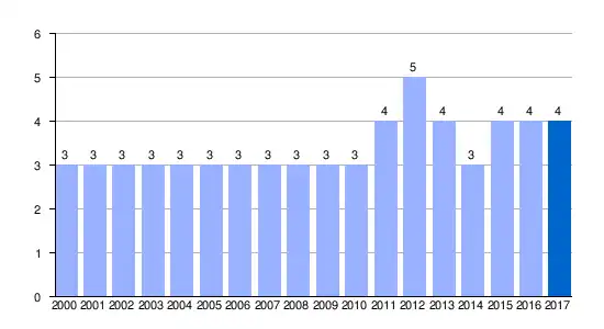 | Gráfica de evolución demográfica de Hoz de Mena entre 2000 y 2017 |