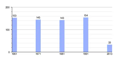 Hasta 2013 la población era de 33 habitantes,[4] con una densidad de población de 9,4 hab/km².[4]