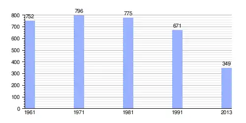 | Gráfica de evolución demográfica de Hrgovi Donji entre 1961 y 2013 |