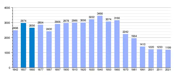 | Gráfica de evolución demográfica de Huéneja[2] entre 1842 y 2021 |