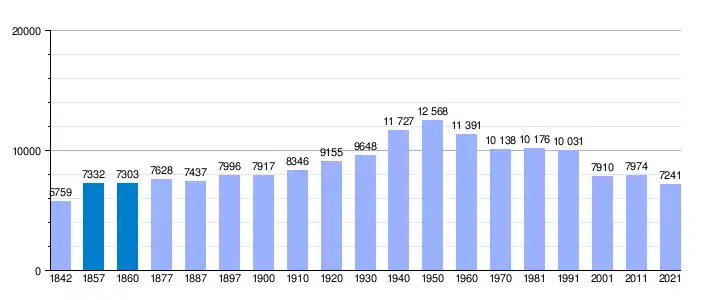 | Gráfica de evolución demográfica de Huéscar[12] entre 1842 y 2021 |