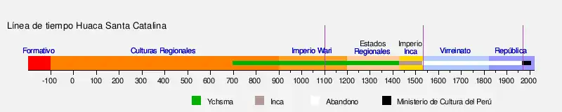 La Huaca Santa Catalina fue un importante punto de encuentro para las dos culturas que la habitaron, los Ychsmas y los Incas.[1] Durante tres siglos, estas culturas se asentaron en los valles Rímac y Lurín, siendo expertos agricultores, y desarrollando la pesca y el comercio a gran escala.[2]