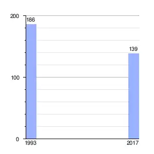 | Gráfica de evolución demográfica de Huacas entre 1993 y 2017 |