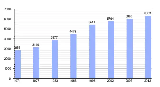 | Gráfica de evolución demográfica de Huahine entre 1971 y 2012 |