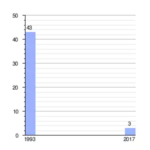 | Gráfica de evolución demográfica de Hualtacal entre 1993 y 2017 |
