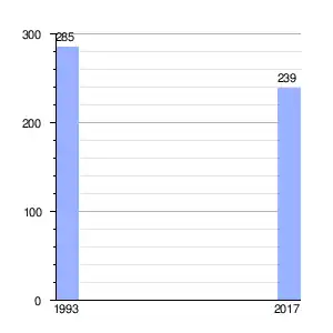 | Gráfica de evolución demográfica de Huaricancha entre 1993 y 2017 |