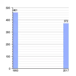 | Gráfica de evolución demográfica de Huayllapa entre 1993 y 2017 |